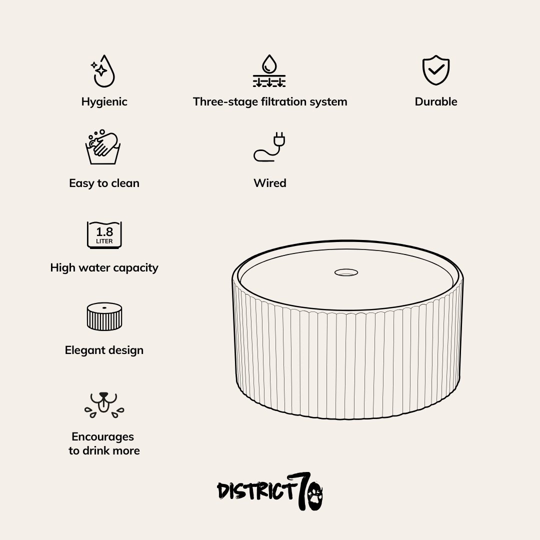 District 70 SENSE - Keramische drinkfontein - Japandi stijl design - 1800 ML - Verkrijgbaar in Zwart, Merengue en Beige