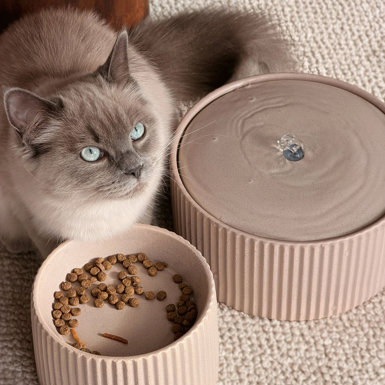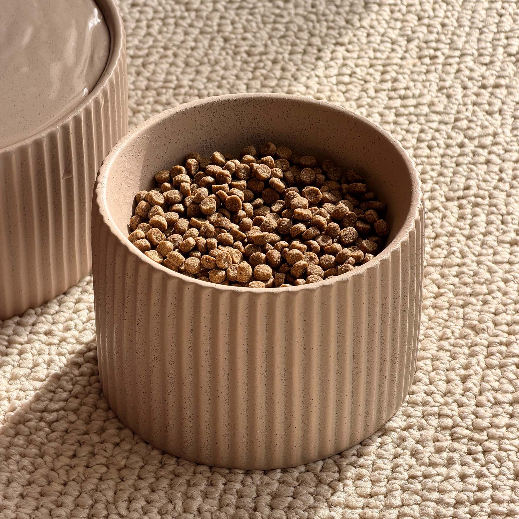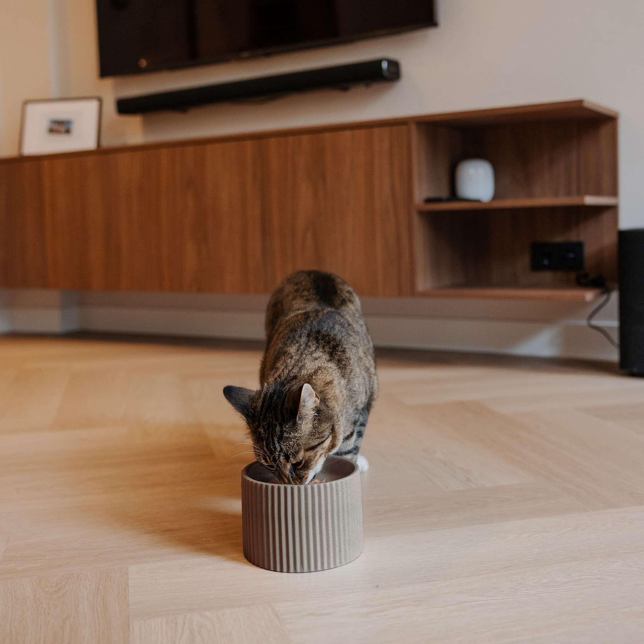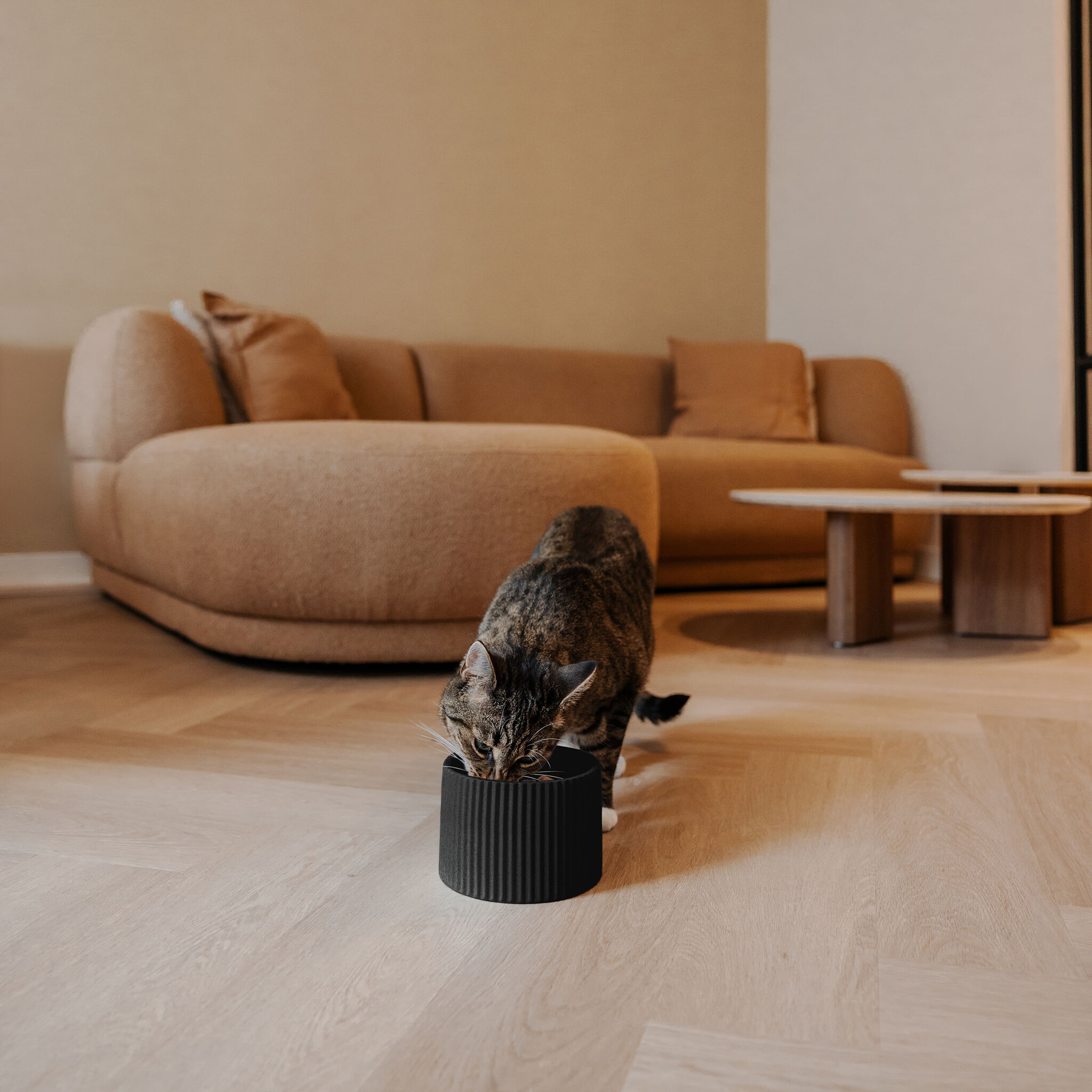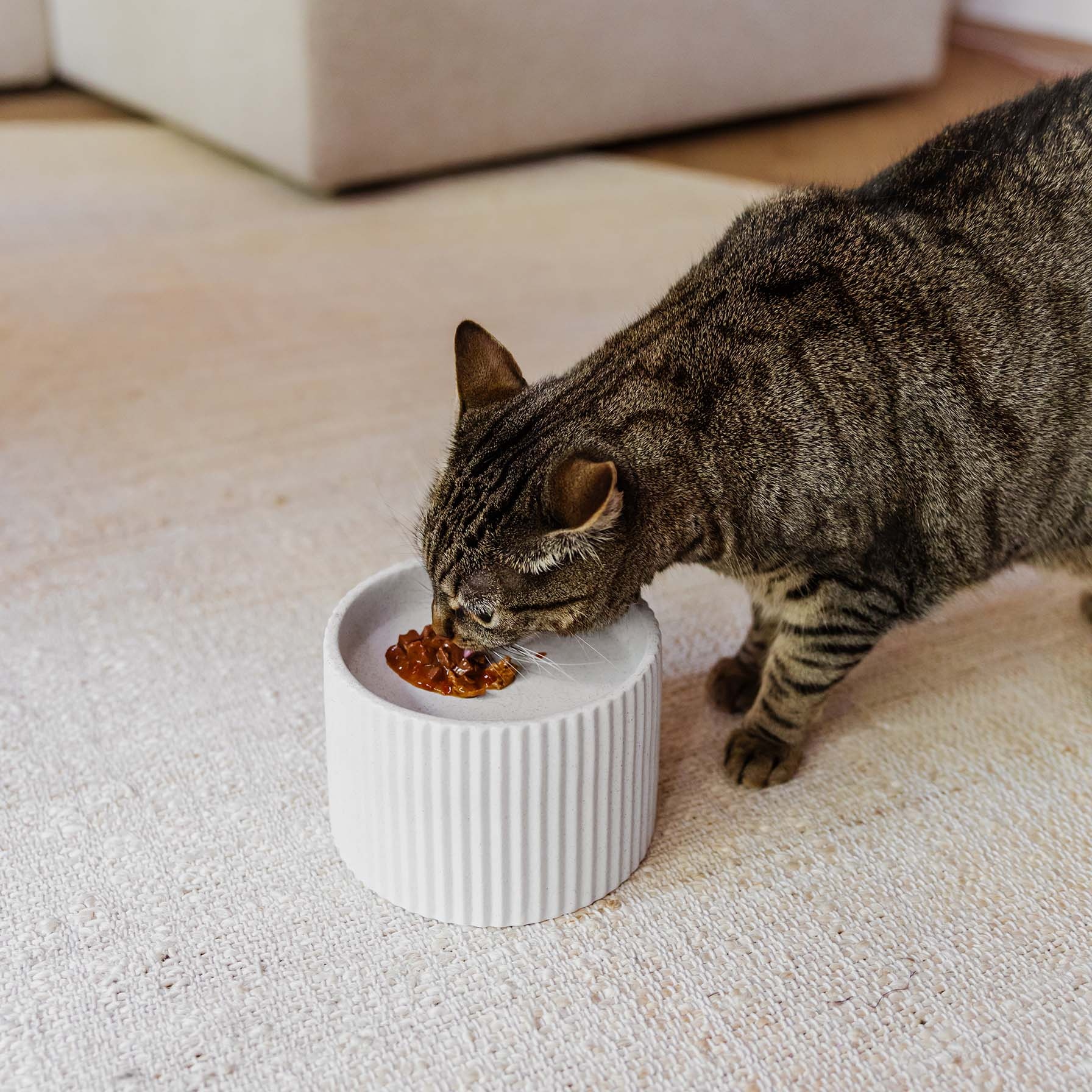 Geef het eetmoment van jouw kat evenveel aandacht als de rest van je interieur. Het geribbelde design, de zachte lijnen en de rustige kleuren maken van elke maaltijd een aangenaam en ontspannen moment.