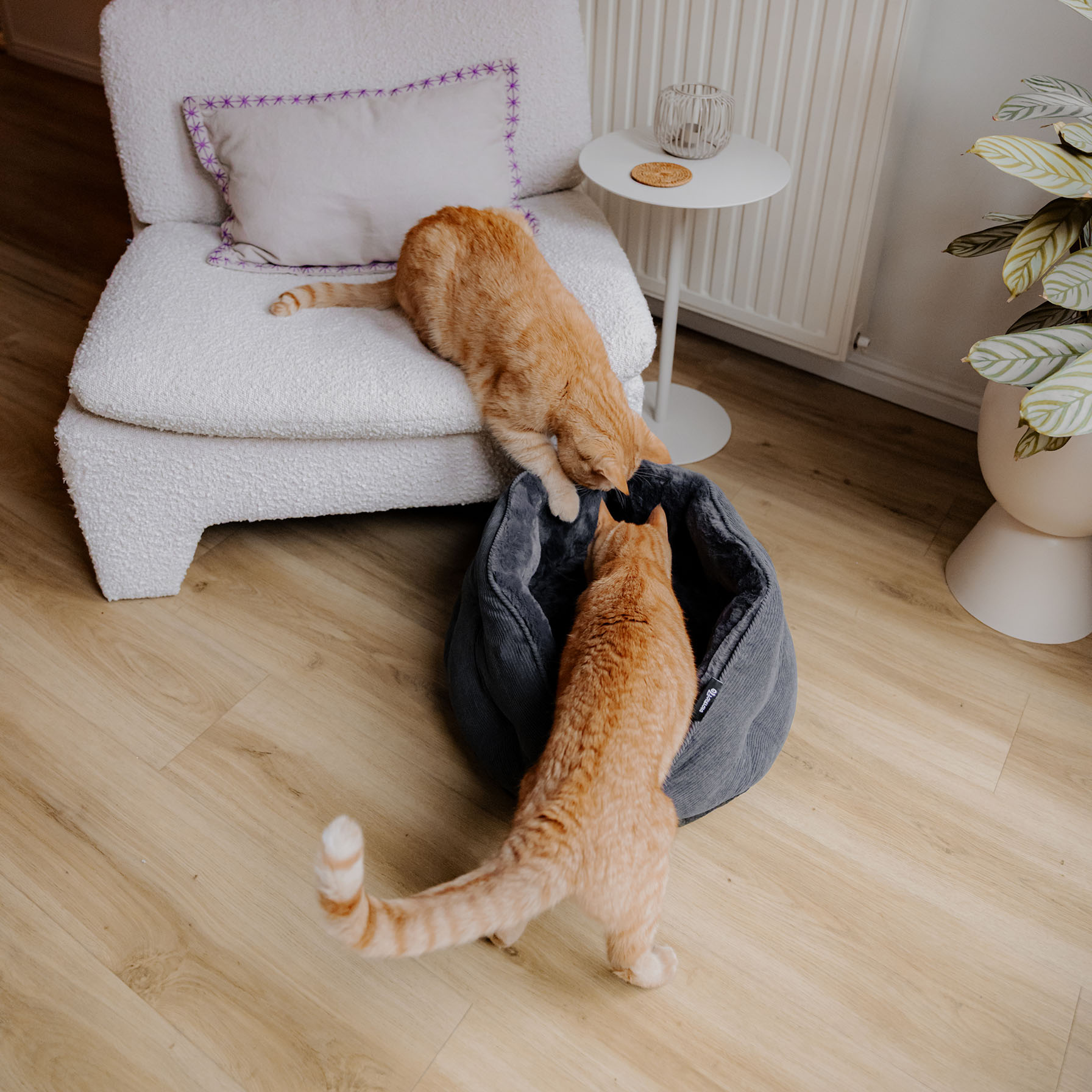 De luxe kattenmand TUCK is een comfortabele plek voor jouw kat om zich in op te rollen. De ribstof kattenmand is een waardevolle toevoeging voor ieder interieur.