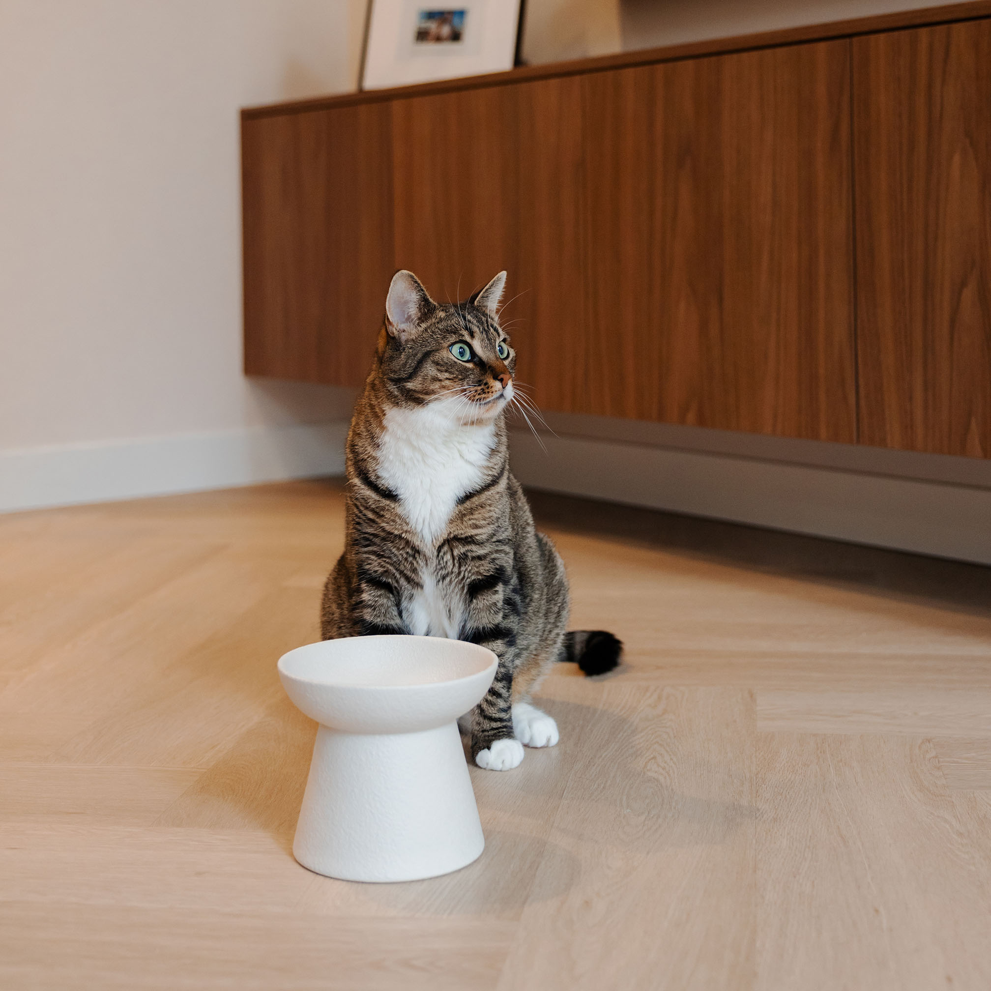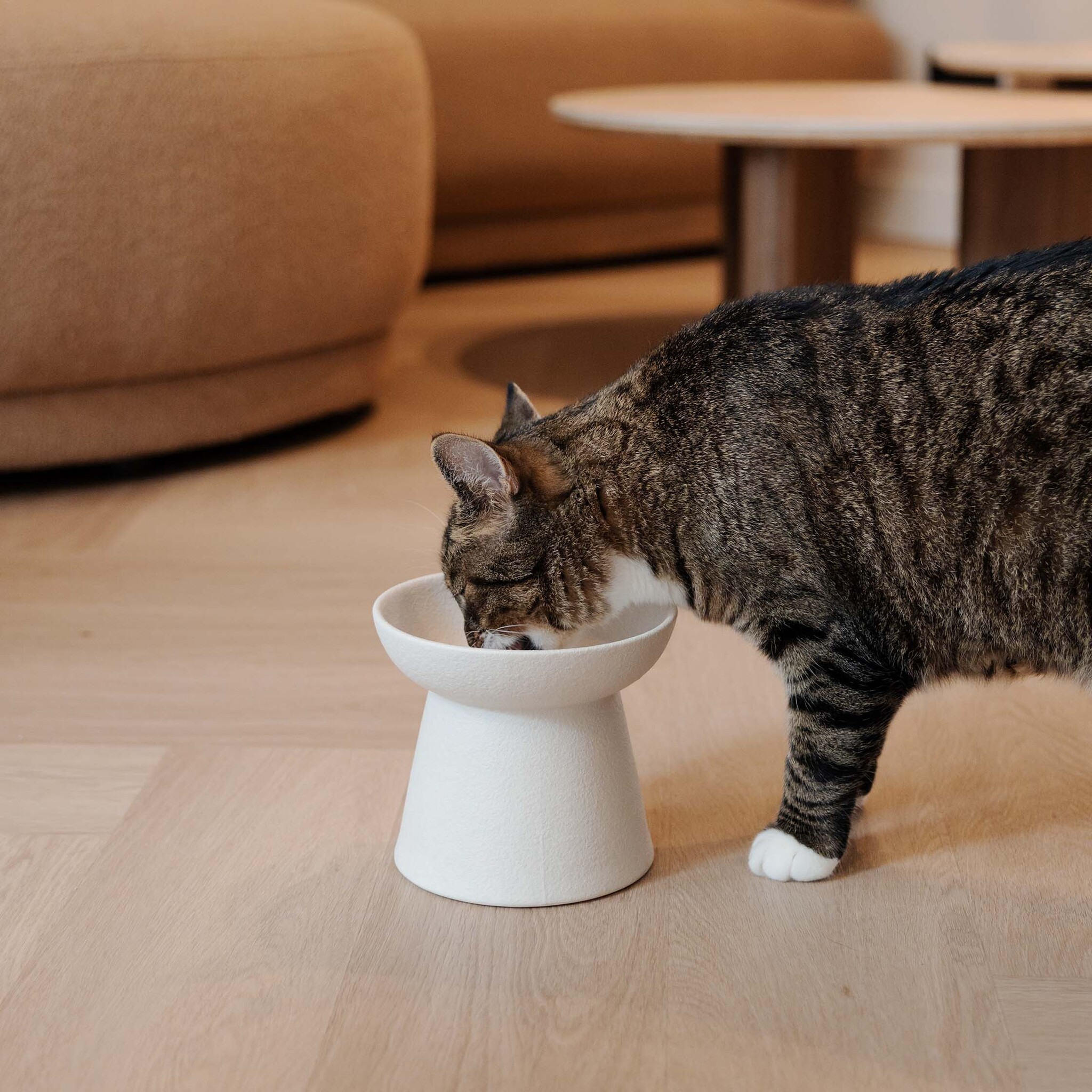 Creëer een serene en stijlvolle eet plek voor je kat met de WABI SABI voerbak – een verhoogde keramieken voerbak die naadloos aansluit bij de Japandi interieurstijl.